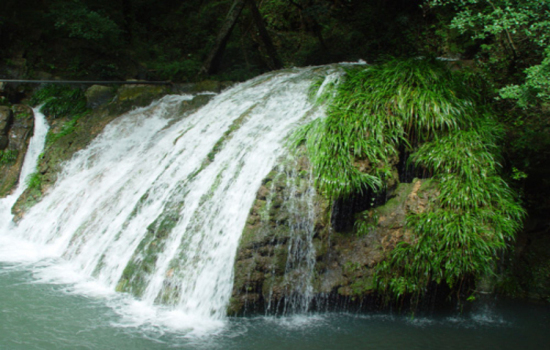 小天池:又名"上下天池",誉称"小庐山"。位于九级天溪发源处。上天池海拔210米,呈直角三角形,面积93.28平方米,水深1.8-2米。下天池海拔206米,呈矩形,面积114.46平方米,水深1.8-2.3米,上下天池瀑布宽3.8米,落差3.7米。